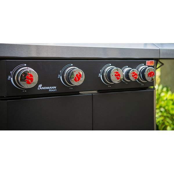 Ψηστιέρα υγραερίου Landmann Rexon PTS 4.1 με PTS σύστημα ψησίματος, 4 ανοξείδωτους ανεξάρτητα ρυθμιζόμενους καυστήρες, πλαϊνό μάτι ψησίματος, μαντεμένιες σχάρες, ντουλάπι αποθήκευσης ευκολία στη χρήση και τον καθαρισμό.